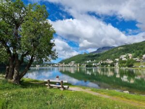 Alternatively, guests may prefer a boat fondue experience. After a short drive from St. Moritz, a small boat carries you across the peaceful waters of Lake Sils, one of the most tranquil lakes in the Engadin. After arriving on the lakeshore, a gentle walk leads to an alpine hut where a traditional picnic is served.