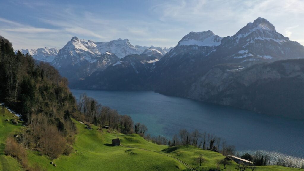 Lake Lucerne has a maximum depth of approximately 214 metres and is fed by alpine rivers from the Gotthard massif.