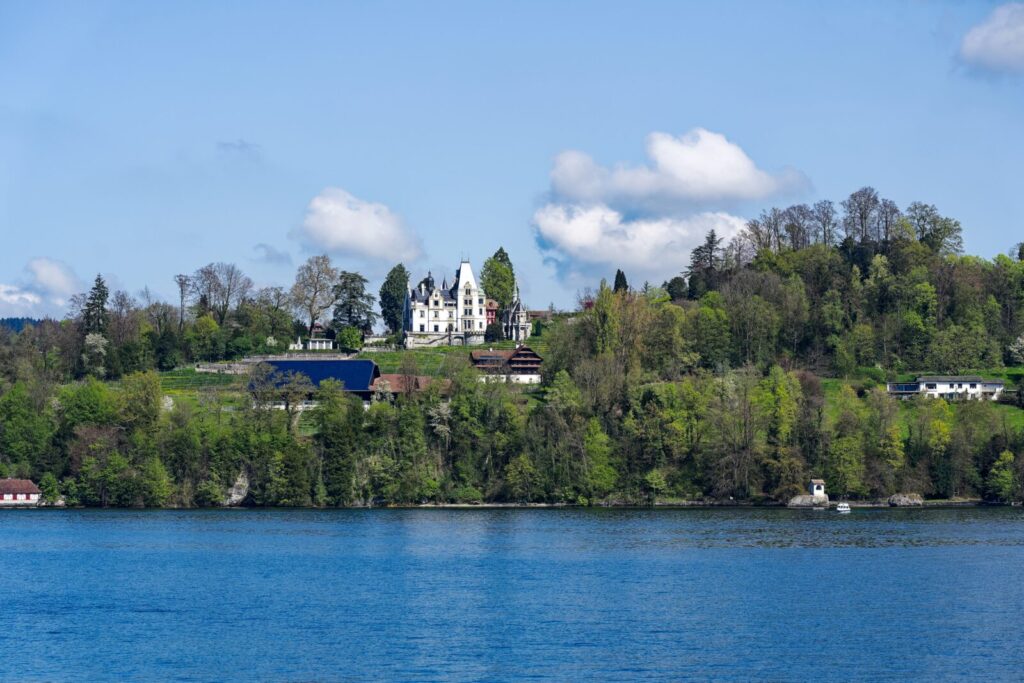 Meggenhorn Castle was completed in 1870 and reflects French château-style architecture overlooking the lake.
