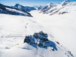 Morning: Day 4 is dedicated to one of the most iconic high-altitude experiences in the Alps and a defining moment within many Swiss Alps tours. You travel by mountain railway through alpine forests, gradually climbing toward Jungfraujoch – the Top of Europe. The ascent itself is part of the experience, each section revealing a different layer of the landscape.